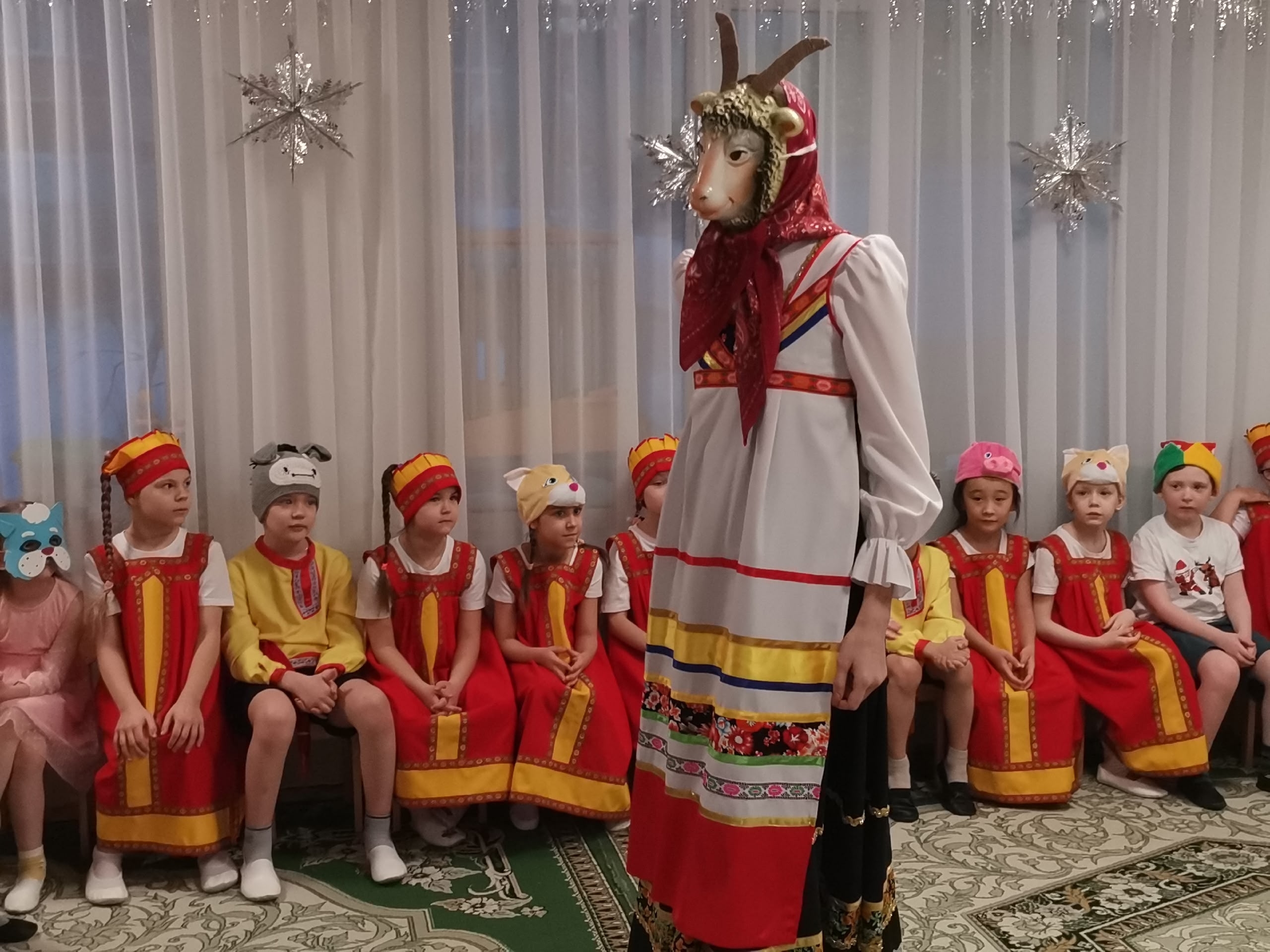 Настоящая русская атмосфера царила в нашем детском саду, когда настала долгожданная Святочная неделя. Дети в ярких праздничных костюмах, словно герои старых сказок, водили хороводы, пели традиционные праздничные песни.
